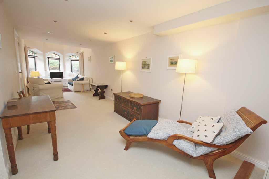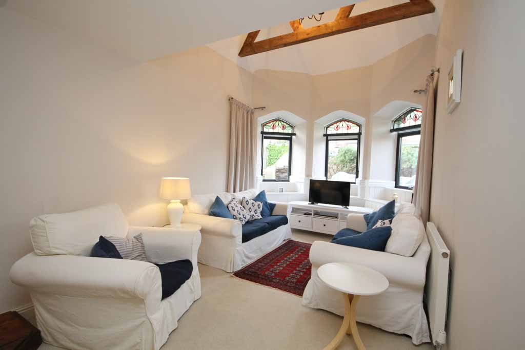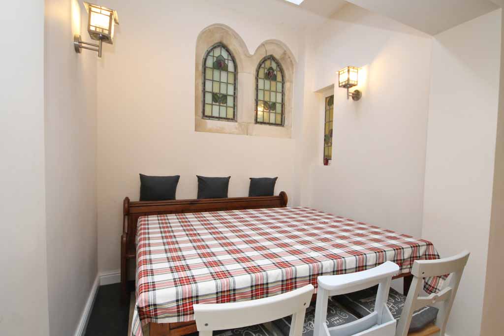 This beautifully presented former part of an Edwardian church has been very tastefully converted into a very special property, whilst at the same time retaining many of the original features such as: exposed beams within a vaulted ceiling in the living room, stained glass windows in several rooms, ornate wood panelled high ceilings in two bedrooms and the turned balustrade on the staircase. The marriage of the modern double-glazed windows and stylish fitments blend tastefully throughout.